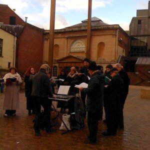 On a Saturday afternoon before Christmas we presented an audience-participation concert in which we sang some of our repertoire and invited the audience to join in with some well-known traditional Christmas carols.