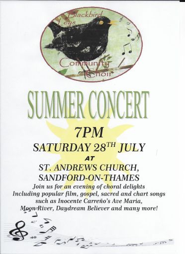 Our main summer concert, as last year, took place in the evening at the Parish Church of St Andrew in Sandford-on-Thames, south of the Oxford ring road. It featured both sacred classical pieces and popular music; spirituals and a hit song from a blockbuster film.