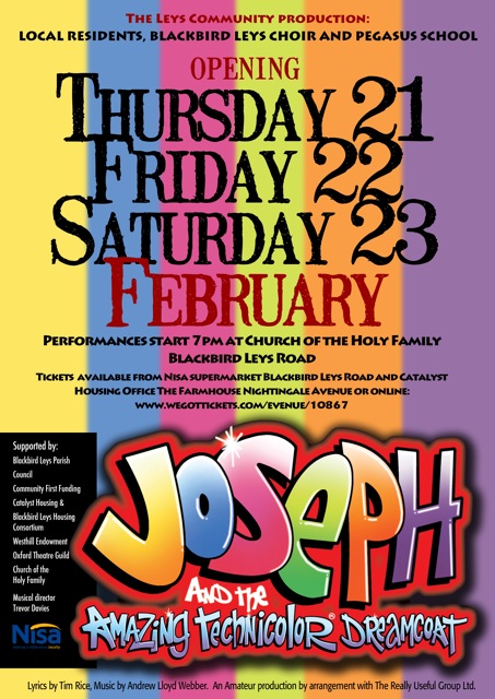 Join the residents of Blackbird Leys, members of the Holy Family Church and the Blackbird Leys Choir for a community performance of Tim Rice and Andrew Lloyd Webber’s famous and well-loved musical!